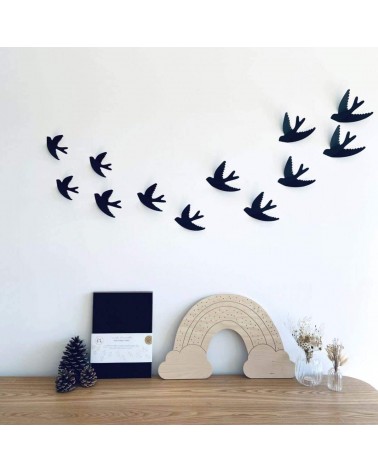 Setinhalt: 12 Wandschwalben in 4 verschiedenen Größen aus 350 g strukturiertem Kunstpapier und 12 Klebepads