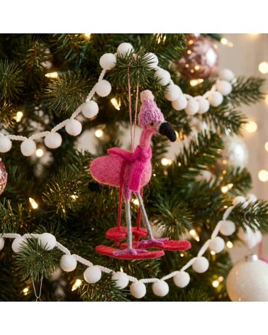 Von Hand aus Naturfilz gefertigt und fair produziert, bringt dieser Ski-Flamingo einen humorvollen Winterakzent in Ihre Weihnachtsdeko.