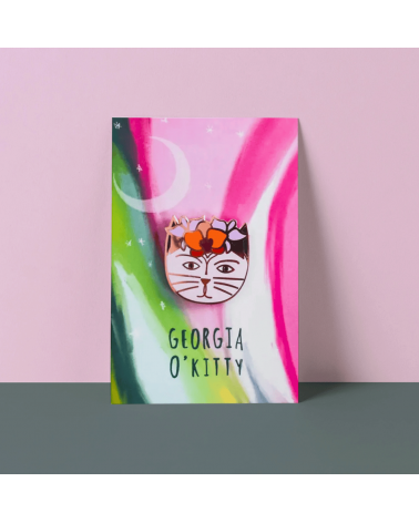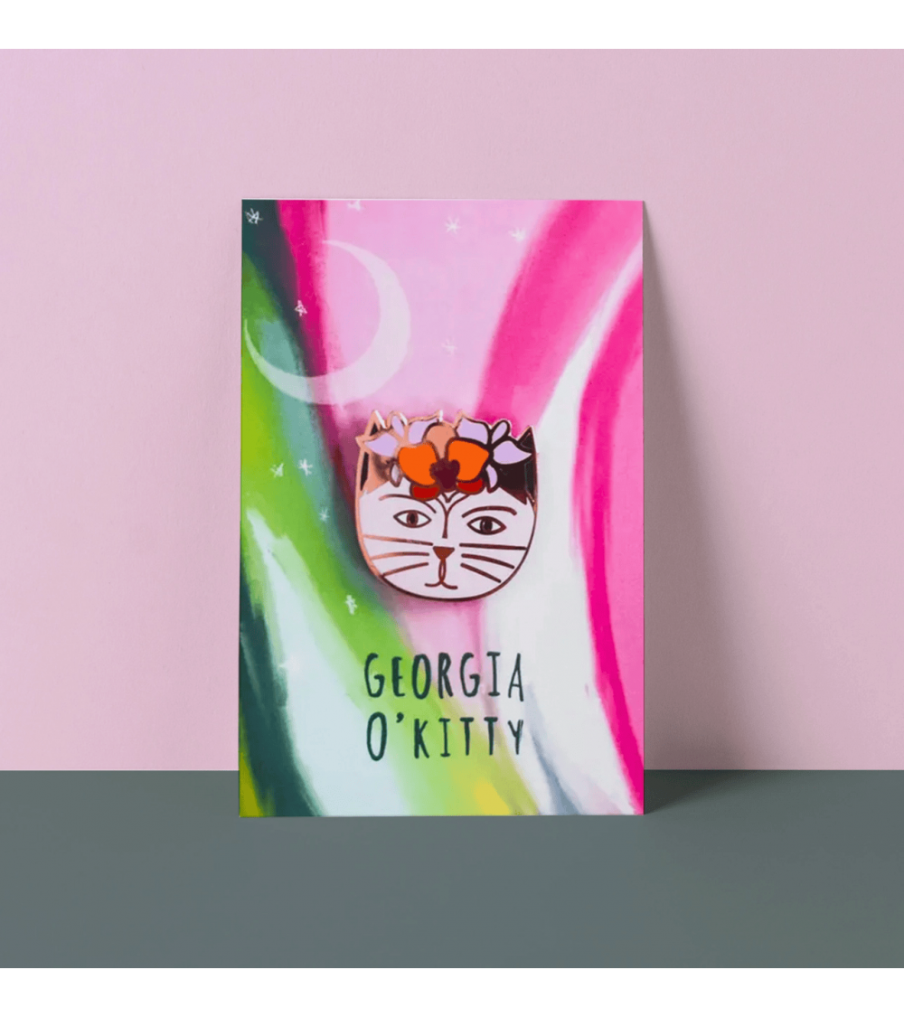 Inspired by the work of Georgia O’Keeffe, the ‘Georgia O'Kitty ’ pin badge is the perfect gift for cat lovers and art enthusiasts.