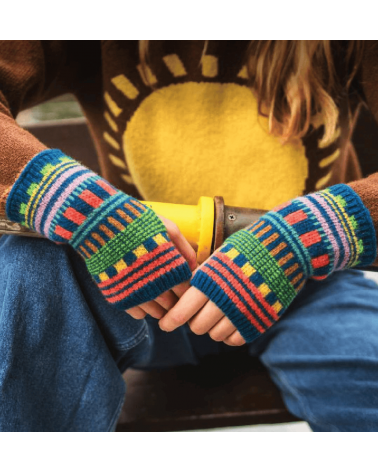 Wool mittens, fingerless gloves - Multicoloured stripes