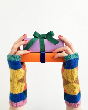 Model: Wool mittens, fingerless gloves - Stained Glass