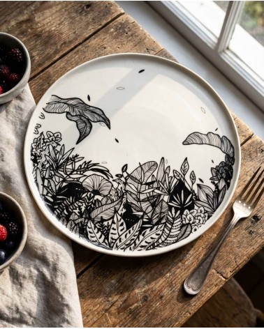 Travail à quatre mains pour cette très belle assiette en porcelaine du céramiste Florian Dejardin sublimée d'une impression signée par l'artiste Pupa.