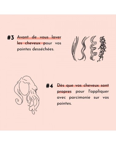 Résultat: des cheveux nourris et brillants, qui se lavent en douceur sans avoir besoin de faire plusieurs shampoings contrairement à un bain d’huile traditionnel.