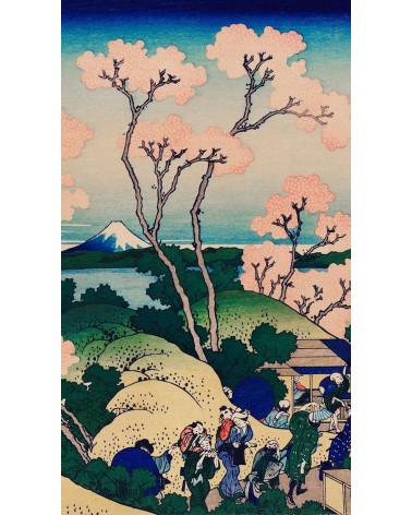 À Edo, Hokusai a peint une scène de pique-niqueurs sous les cerisiers en fleurs de Gotenyama. L'endroit offrait une vue imprenable sur le mont Fuji et la baie de Sagami.