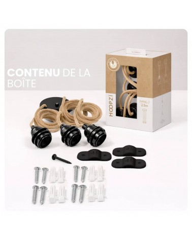 Modèle: HANG-3 Ficelle - Suspension luminaire 3 fils, lampe plafonnier composée de trois câbles électriques textiles de 2,5 m avec douille et pavillon
