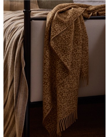 Plaid LEOPARD Natural - Couverture en laine mérinos, couvre lit