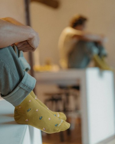 Magnifici calzini colorati con motivi disegnati in Portogallo e realizzati con il miglior cotone organico pettinato.