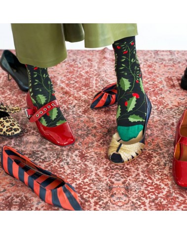 Le calze “Cueillette Faux Noir” di Bonne Maison uniscono design naturale e raffinatezza francese. In cotone egiziano di alta qualità, presentano un motivo vegetale poetico su fondo nero. Sottili, morbide e resistenti, sono un accessorio elegante e senza tempo.