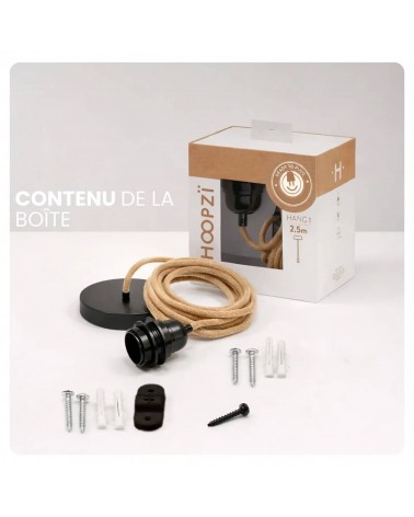 Modello: HANG-1 Corda - Lampada a sospensione 1 luci, lampada da soffitto costituita da un cavo tessile di 2,5 m con presa e rosone