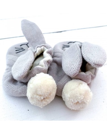 Il colore neutro le rende facili da abbinare, mentre il viso ricamato e le orecchie da coniglio aggiungono un tocco tenero e giocoso. Perfette anche come idea regalo per una nascita.