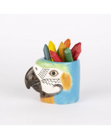 Il Mini Vaso Pappagallo Ara di Quail Ceramics è un oggetto decorativo ricco di personalità, ispirato al colorato pappagallo ara. Realizzato in ceramica e dipinto a mano con grande cura, presenta dettagli vivaci e realistici.
